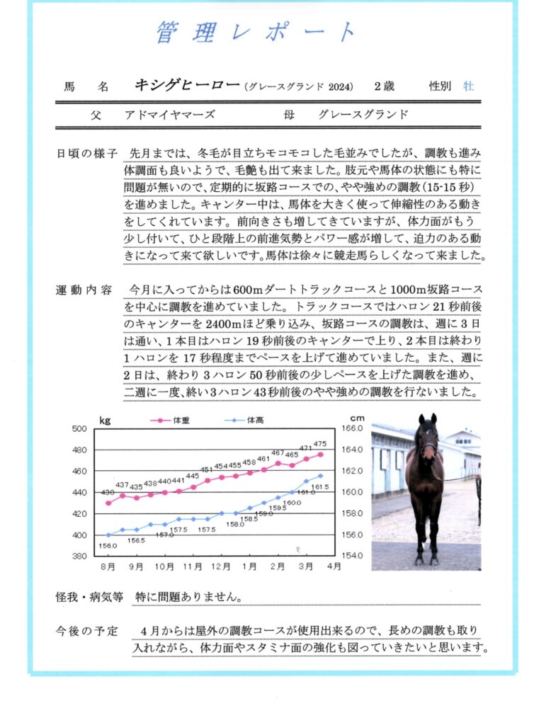成長しながら調教を進められています。